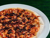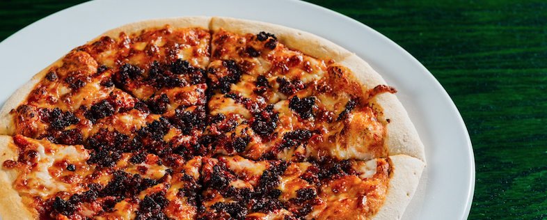 Con el chorizo de la casa y queso mozzarella y salsa marinara.