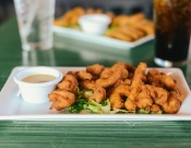 Deliciosas tiras de pechuga de pollo, con un crujiente y ligeramente dulce empanizado, servidas con un rico aderezo Honey Mustard.